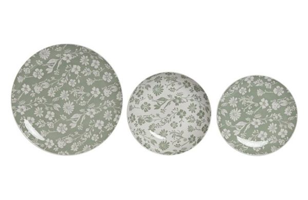 VAJILLA PORCELANA 18 PZAS LINO VERDE VIVO CHOCOLATE
